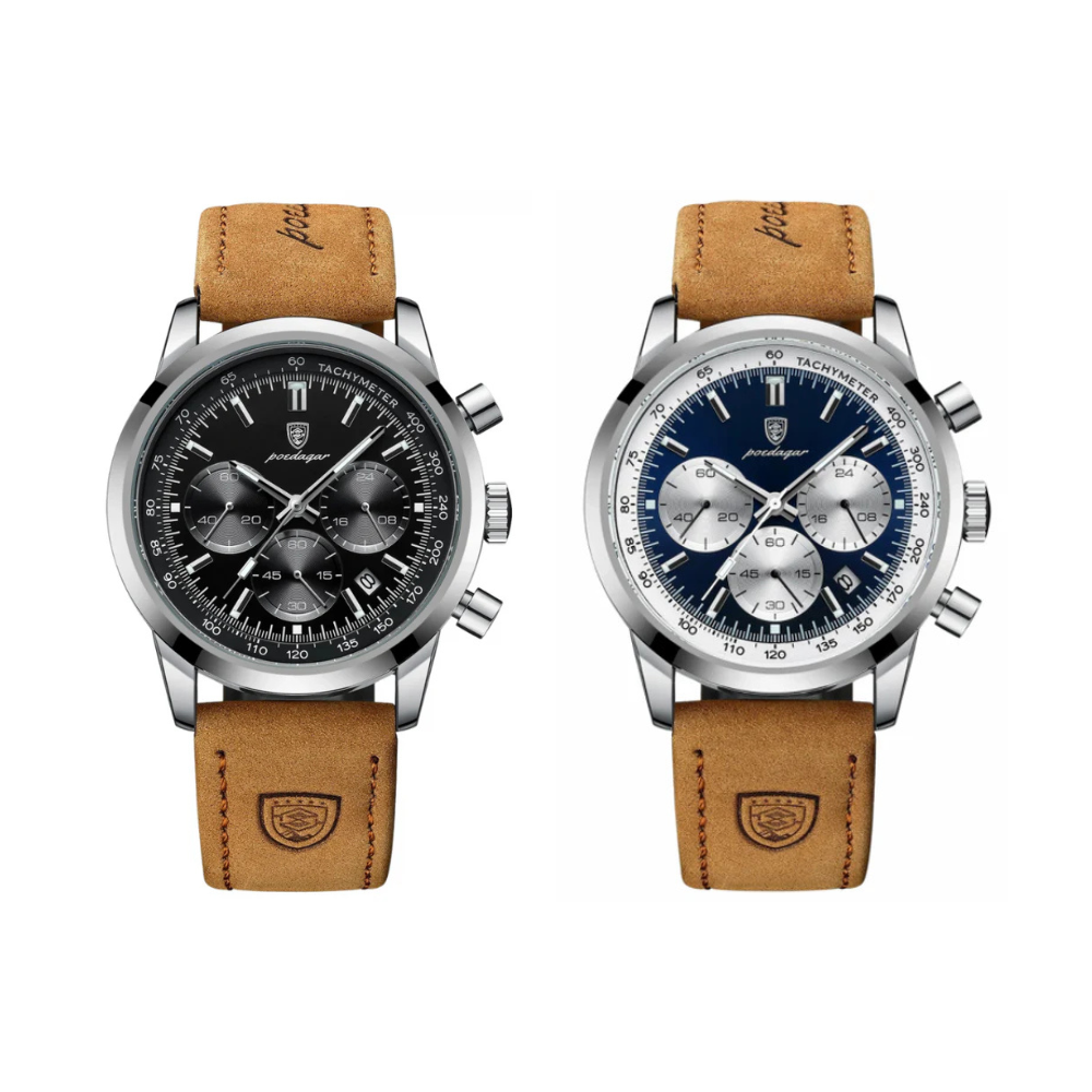 Estilo Esportivo com Toque de Sofisticação:A pulseira de couro proporciona conforto durante todo o dia, enquanto o design esportivo reflete uma atitude dinâmica. Seja na academia, em uma reunião ou em uma escapada de fim de semana, este relógio é a escolha perfeita.