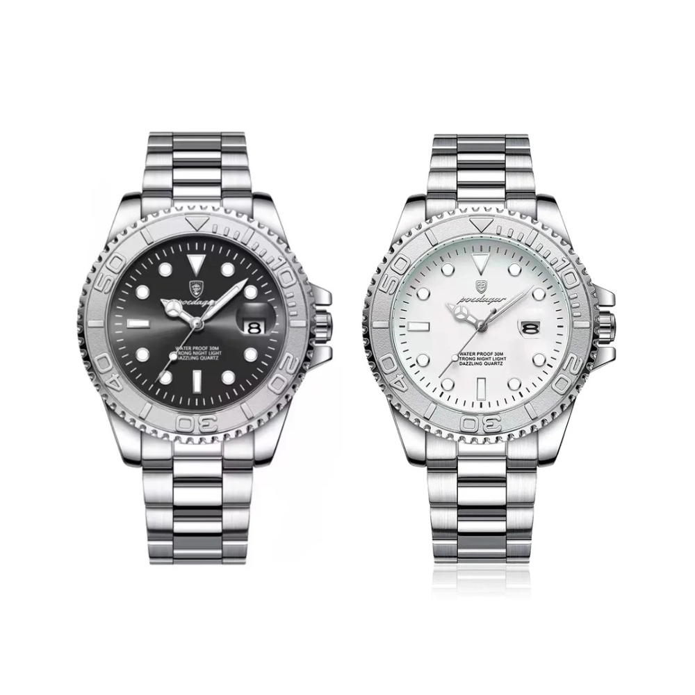 Na tradição Poedagar, oferecemos uma garantia de qualidade de 12 meses, respaldando nossa confiança na excelência deste relógio. Cada segundo com o Poedagar Yacht® é uma afirmação de estilo e conquista.